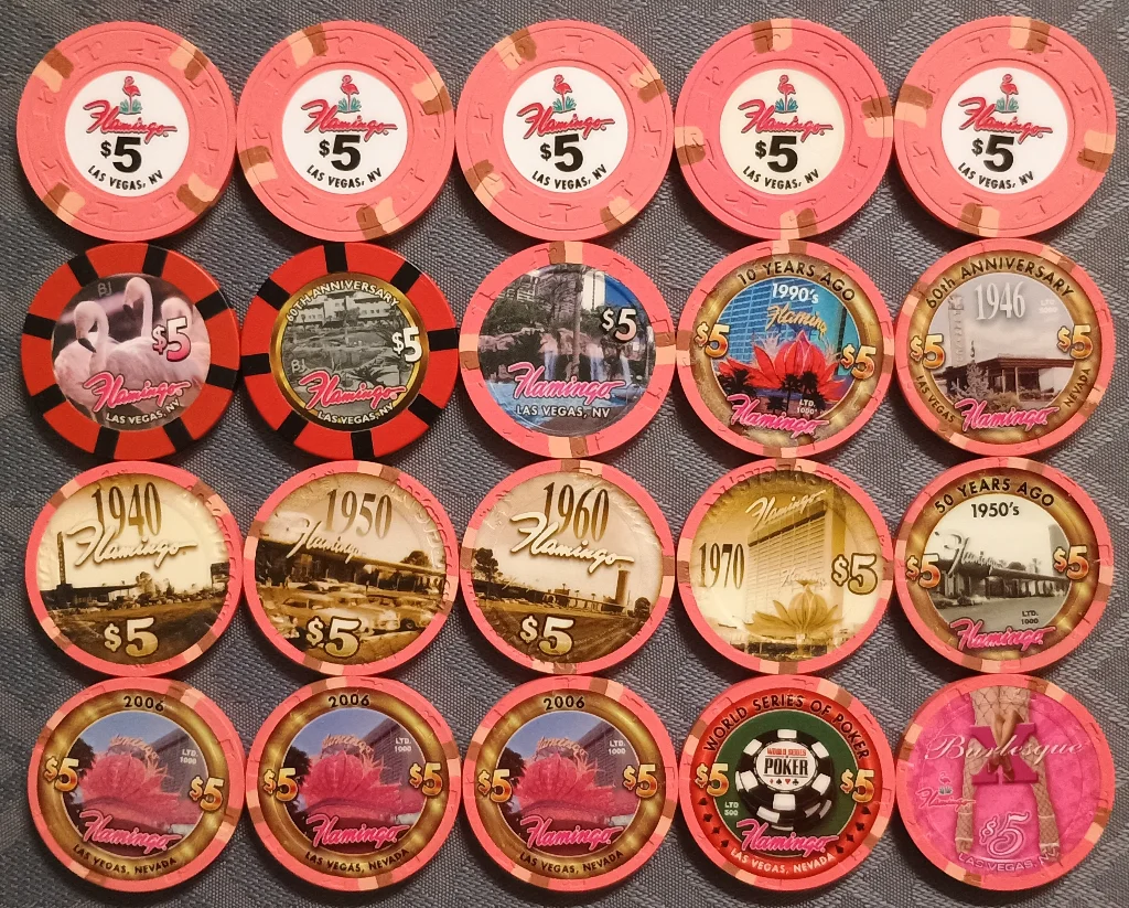 Ended 360 chip Flamingo Las Vegas set w/mint spotted birds
