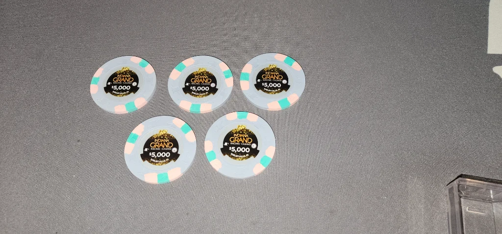 I have up for auction 5x $5k IG chips. We got these in play a couple of times in my cash game, but only as value chips. They never saw a pot, and no one had enough to shuffle. I'd say near mint fo sho.