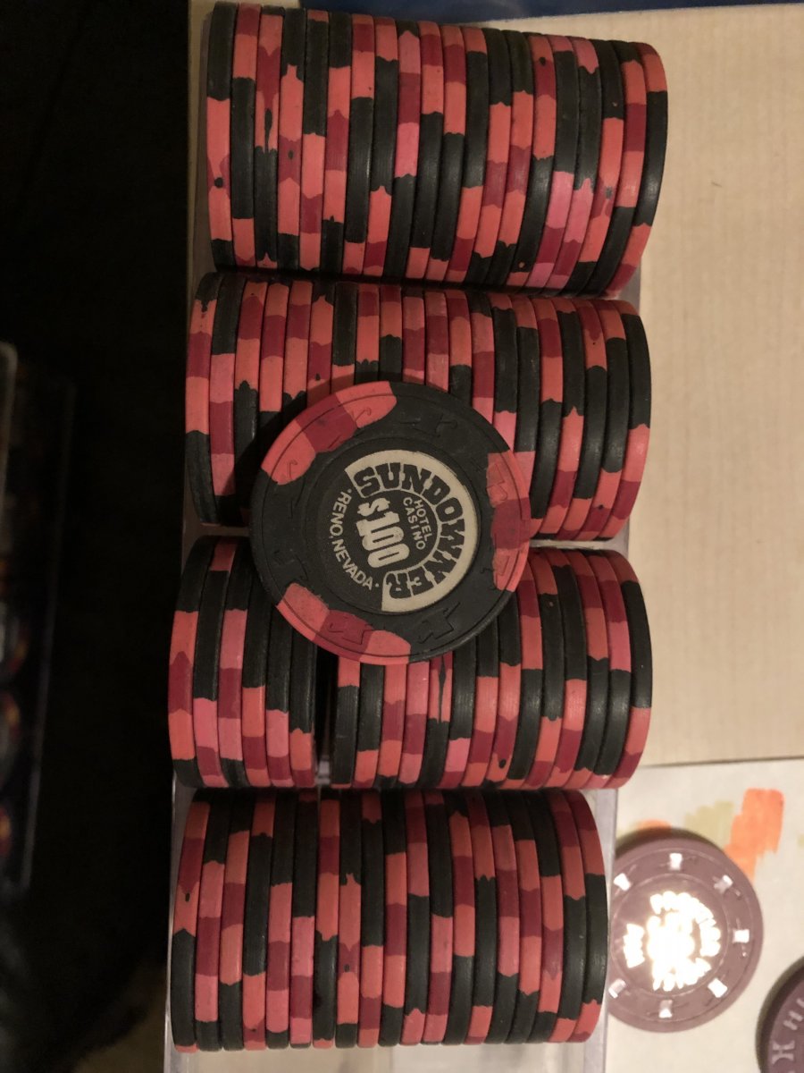 19 x Ambassador Plaza $100s - Black [$75/19 chips] - excellent condition --- I have no idea where the last chip went, I am still looking for it. I can throw in an extra Charcoal to make a full barrel and offer as trade bait for buyer to find the last chip. — TRADED