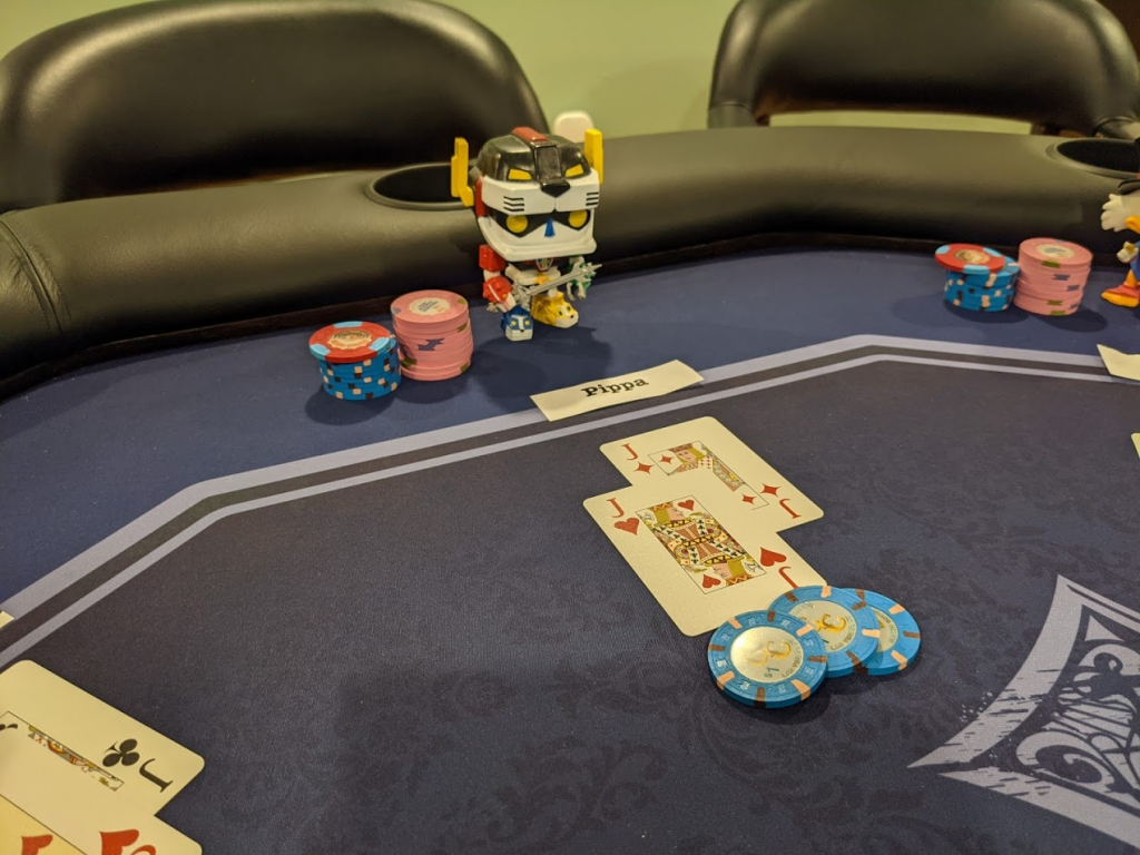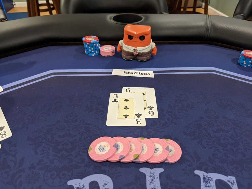 @cmoon likes their Suited King and decides to raise it up to a whopping $1.50 View attachment 720480 But @Pippa's got Pocket JJigities and makes it $3 pre-flop View attachment 720481 @krafticus is on some kind of cheese-induced tilt and calls, but is still grumpy about their cards, so decides to do so using all fracs View attachment 720482 The rest of the peanut gallery calls and we're off to a flop! View attachment 720483