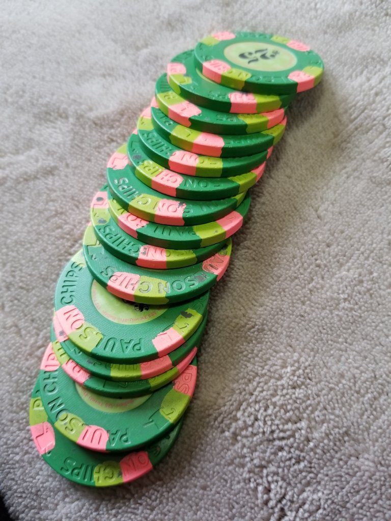 Chips are in good condition but rather worn down. I've heard they go for $1-2 each like this, so I'm going to start at 1.80 a chip and work down from there. Shipping is probably about $50.