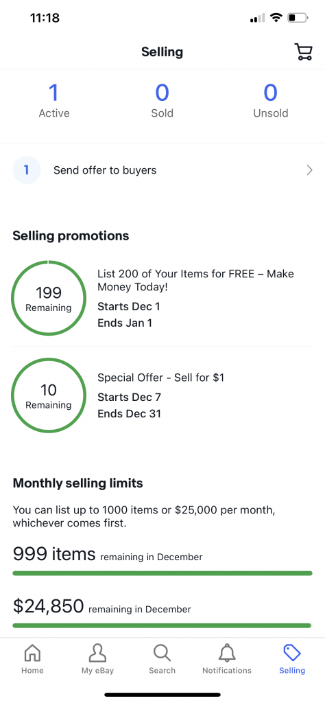 The thing beneath I have never seen before. Looks like the first 10 items you sell they will only charge a one dollar sales fee. that’s cool. Didn’t offer that one to me!