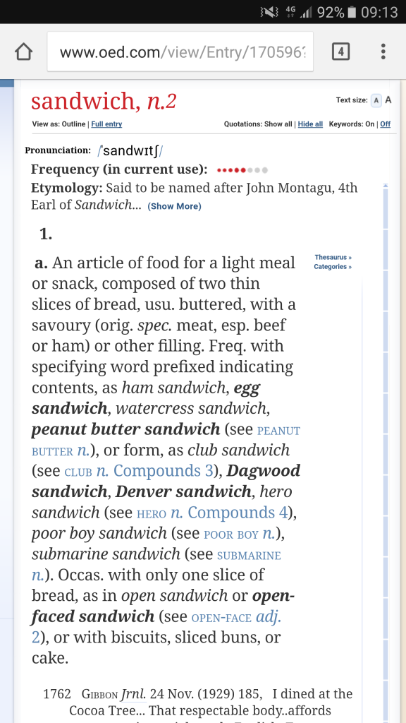 If I take some ham and cheese, put it on a single slice of bread and fold the bread in half so I can eat it with one hand, is that also not a sandwich?