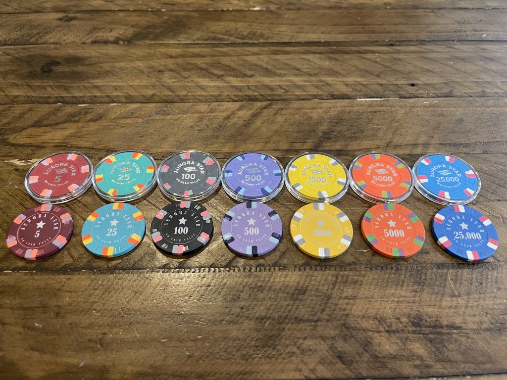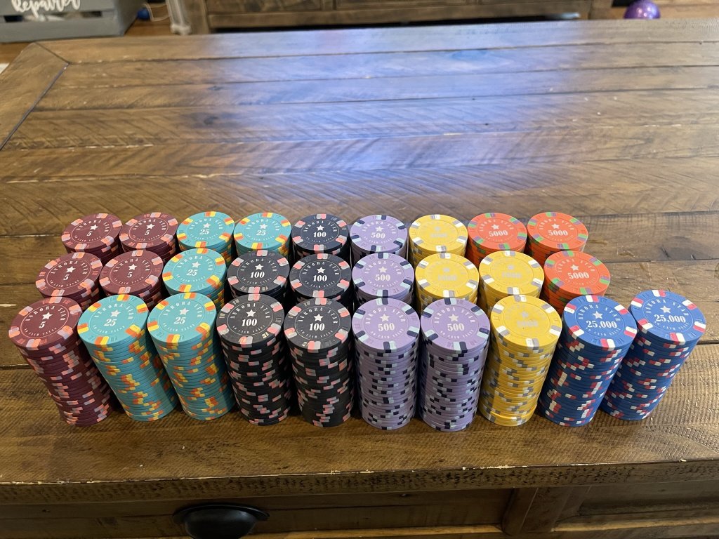 One thing - my 100s came as tournament chips instead of cash - if somebody got cash 100s and was expecting tourney, let me know and we can do a swap!