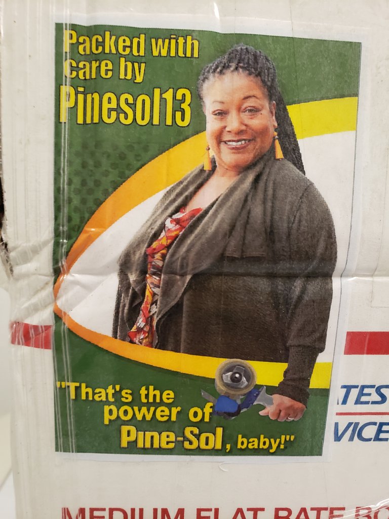 Funny side note: when I dropped off the boxes at the post office, the worker asked me if the boxes contained any liquids, because of the "Pinesol Advertisement " on the box!
