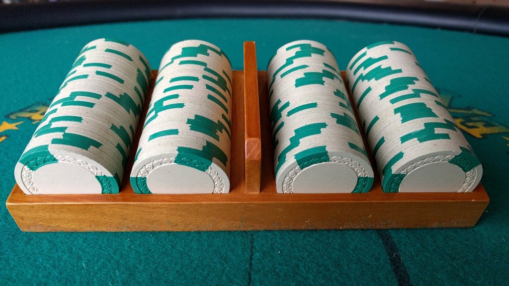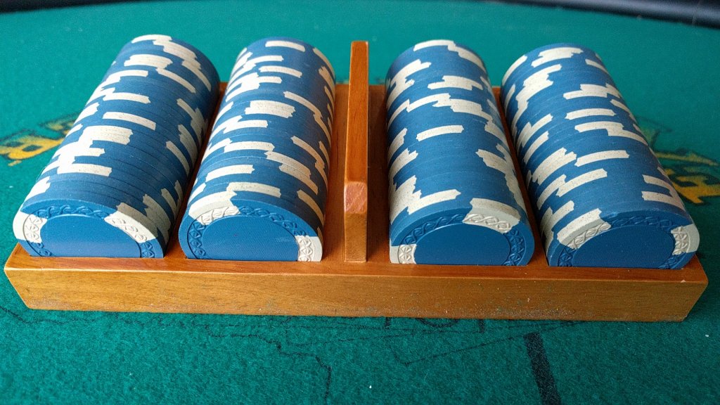 So I was supposed to be listing this as my next Chip Pick, but that isn't happening because I can't let these chips go. For $0.15 per chip (actually more like $0.10 if you back out the value of the 3 wooden cases and 15 wooden racks), I acquired 1500 Roman Mold Blanks with 312 spots, all in unused condition.