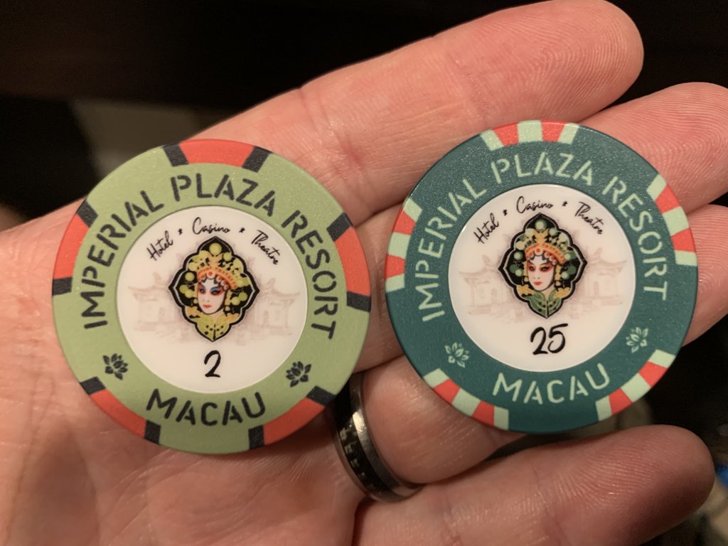 Got it! Cheers.I would like a full sample set of both the cash and tournament Imperial Plaza chips. Additionally, I would like a barrel of $1 chips, 10 of the $2.50 chips, and 10 of the $8 chips.