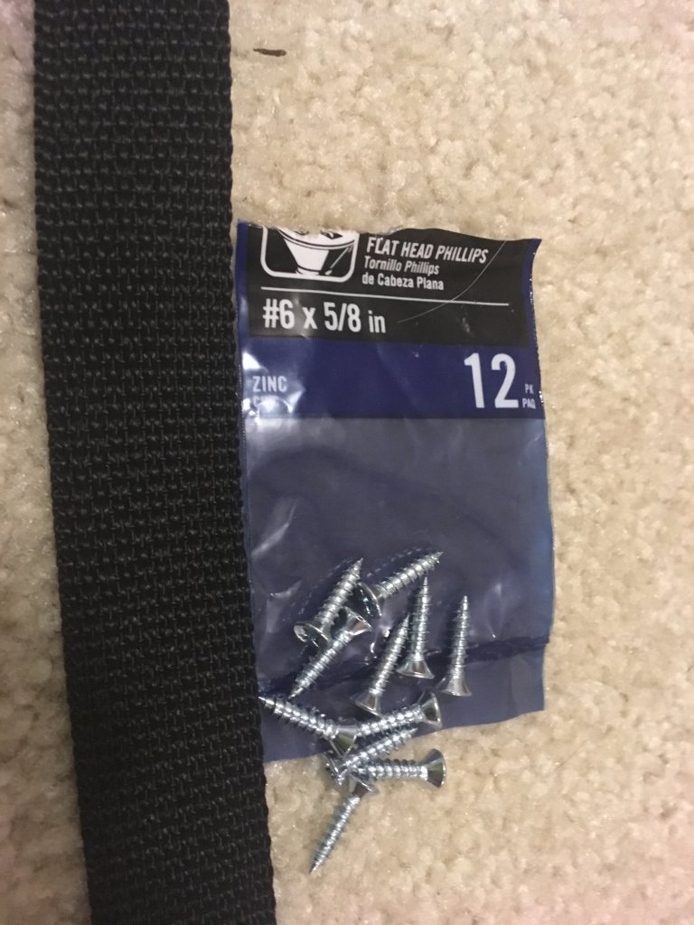 1 yard of strap material: https://www.dritz.com/quilting-sewi...straps/polypropylene-webbing-belting/28602-1/