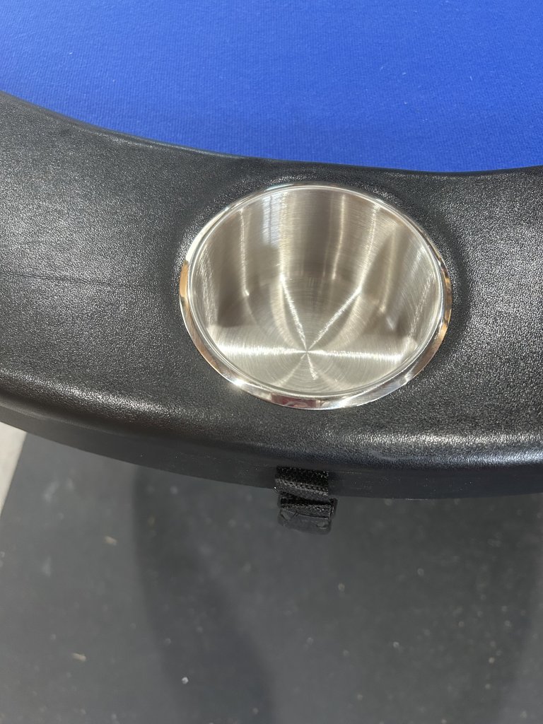 These are brass from Texas poker supply. Fit cans bottles and solo cups. Most ppl at my game drink cans or bottles which these are best for