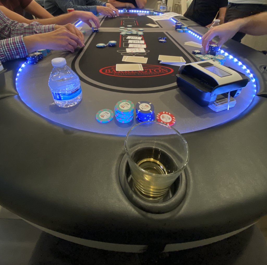 Glad the battery back/dimmer combo is working out for ya! When i ordered a topper for my walmart barrington I did 74x32. Did the same size for the costco one and it's works fine for me. It's not pressed up against the led, and the slight spacing around it looks good imo, but there is room to go larger on the order. whats the card shuffler you are using in your home game? is it good?