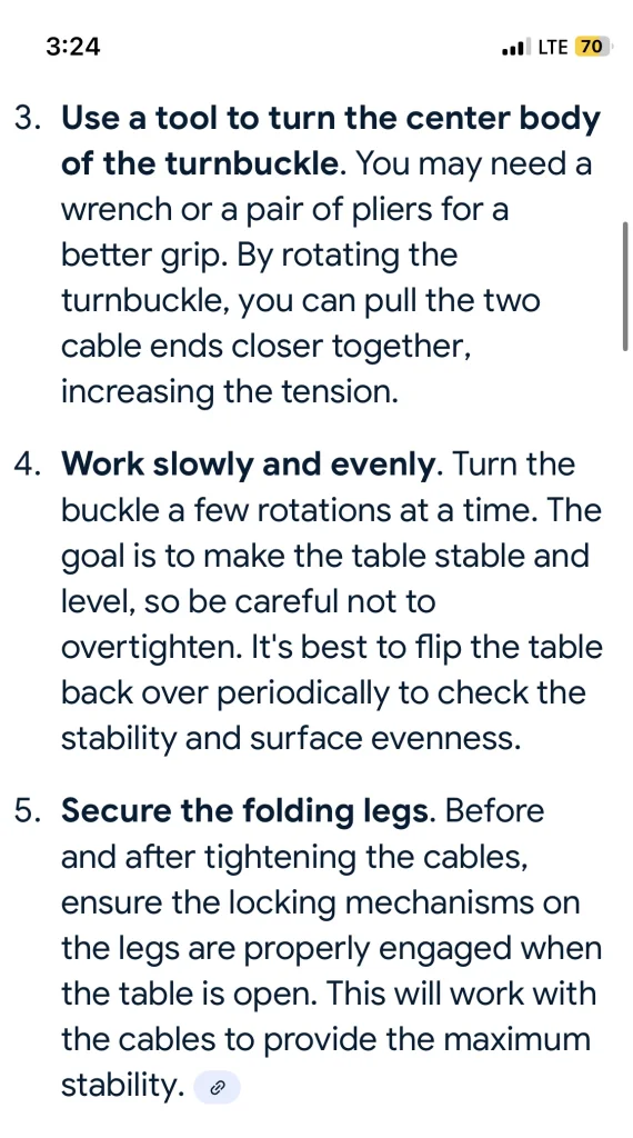 If it doesn’t help, turn the turnbuckle the other way until the table is level to your liking.