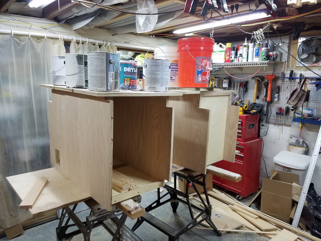 Base cabinets assembled, stained, finished & installed, time to start on the chip displays.