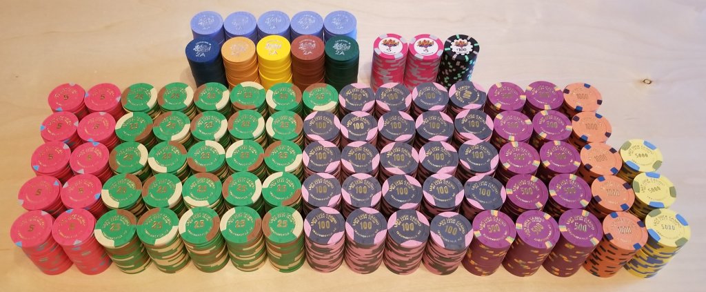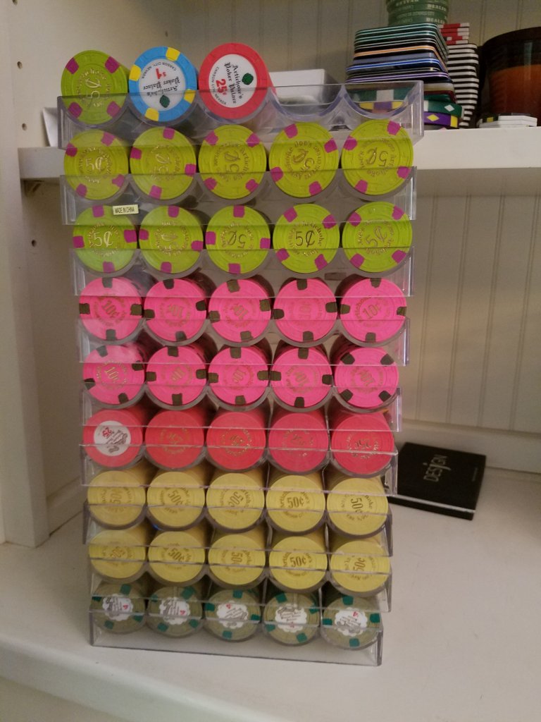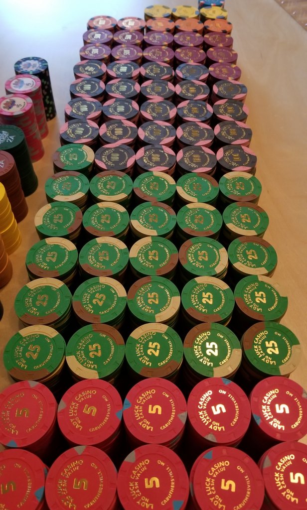 I own 6, 3 of each spotted and solids but at $20 plus per each chip it's not likely to see them in playable quantities being built in today's market! Older pic, grown a bit sinceNeed some pennies in there!