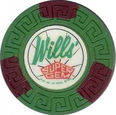 "LARGE KEY (LG-KEY) (a/k/a LARGE GREEK KEY) --greek key design, repeated 15 times. B. C. Wills & Co., Detroit MI and Reno NV, which made these chips from 1962 or '64-1980's. At least one other place offered it recently. In 1990 The Poker Store, Stanton CA, sent me samples...........I have for sale Harrah's Reno 1963 roulette chips, white and green clay. The green ones have the inlay on one side damaged some." per Eisenstadt's website.