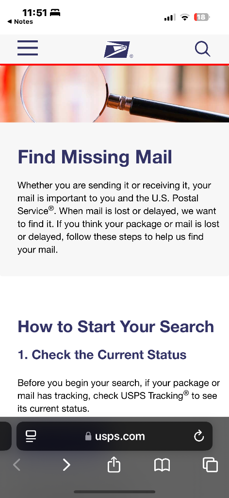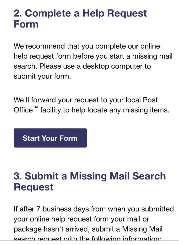 The second is a legitimate missing mail form. Where you are pretty sure it’s lost and possibly not recoverable. They recommend you do the first option before you resort to the second. You’ll see why in my case. I’m sure a real missing mail report would’ve taken much longer.