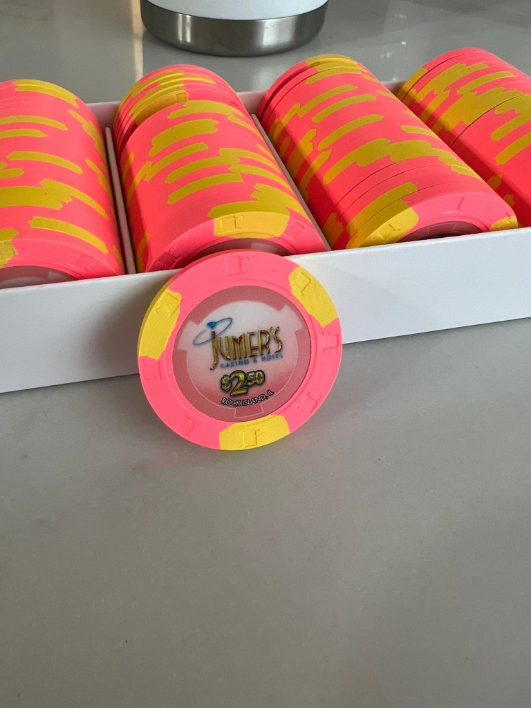 Got a small cash set earlier this week. These chips are awesome! Great feeling, clankly shuffle sound, and they glow a G under a UV light! View attachment 1036850View attachment 1036851