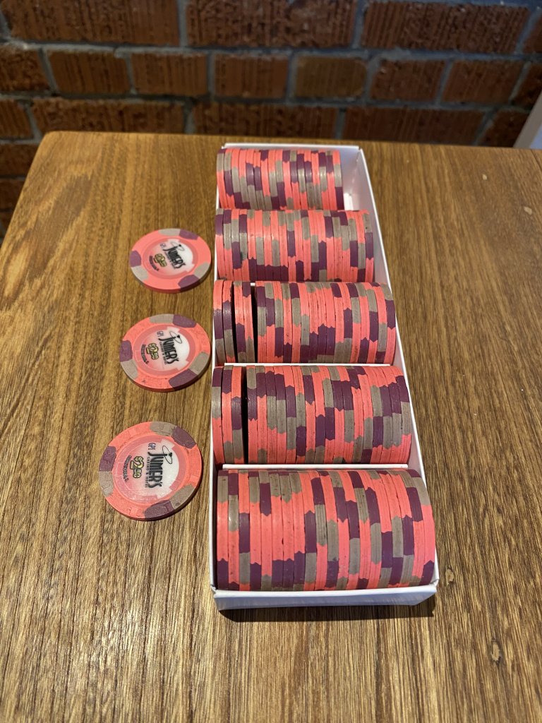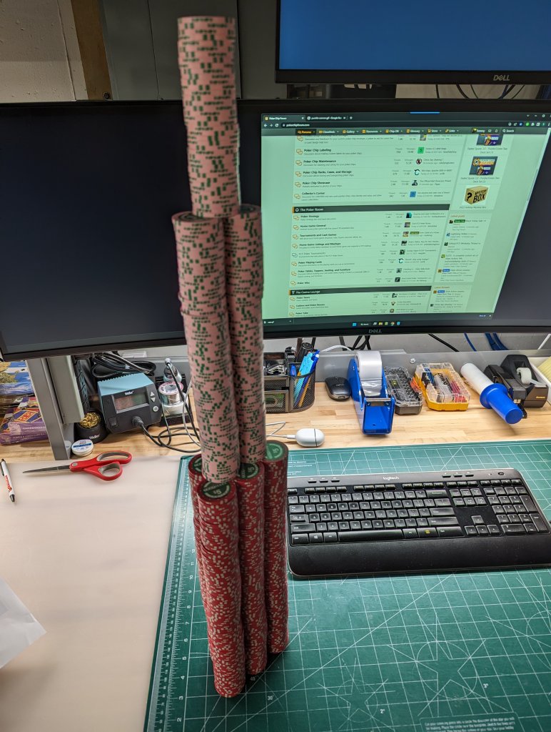 I will say, you either got a much better batch of $5s than I did, or you cherry picked the chips on the tops of those stacks. I went through my first box last night, and only 16 of 100 chips had no damage to the labels on either side. Still cool chips, but man, the patrons of that casino apparently enjoying putting out their cigarettes on the faces of the $5 chips... :mad: