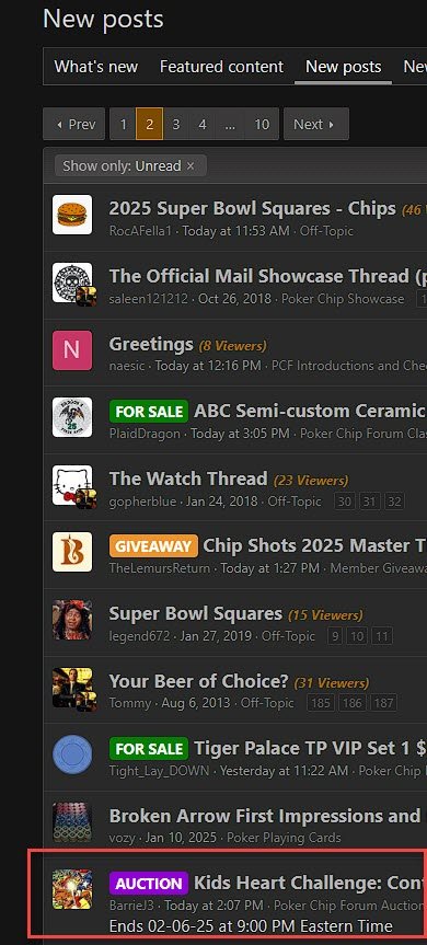 Showing here.Auctions are not showing on "Forum" > "New Posts" when a bid/post is made.