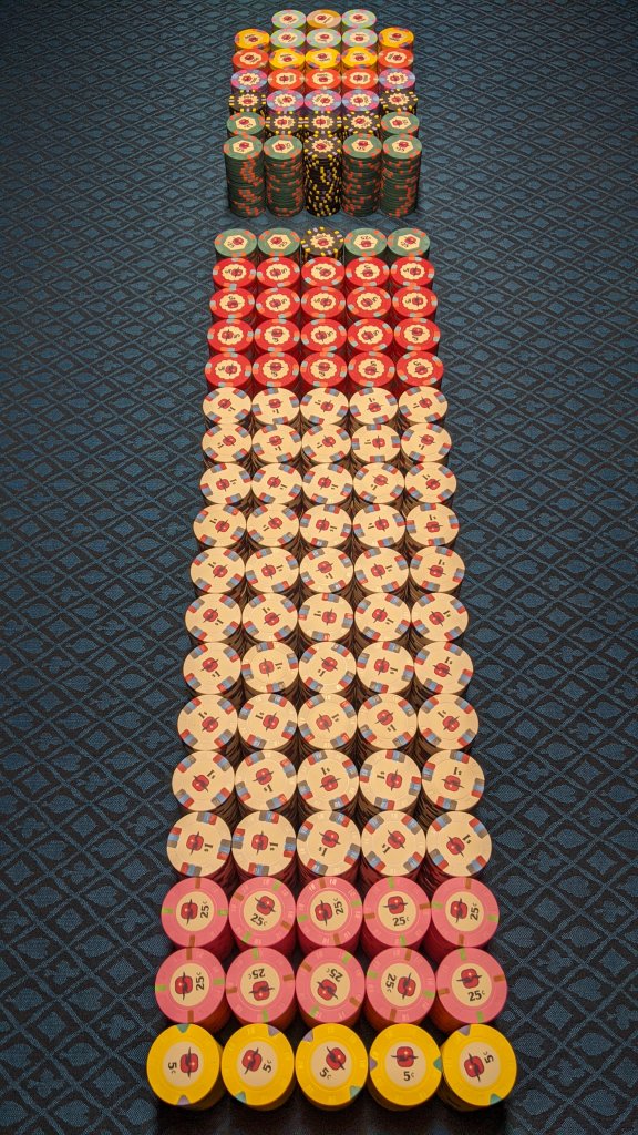 Not excessive at all. Its fun having a set that will play as both cash and tourney if need be while maintaining chip exclusivity from a frac...to 1/2 game with the higher denoms reserved for big games or tourneys. Enjoy your new chips !