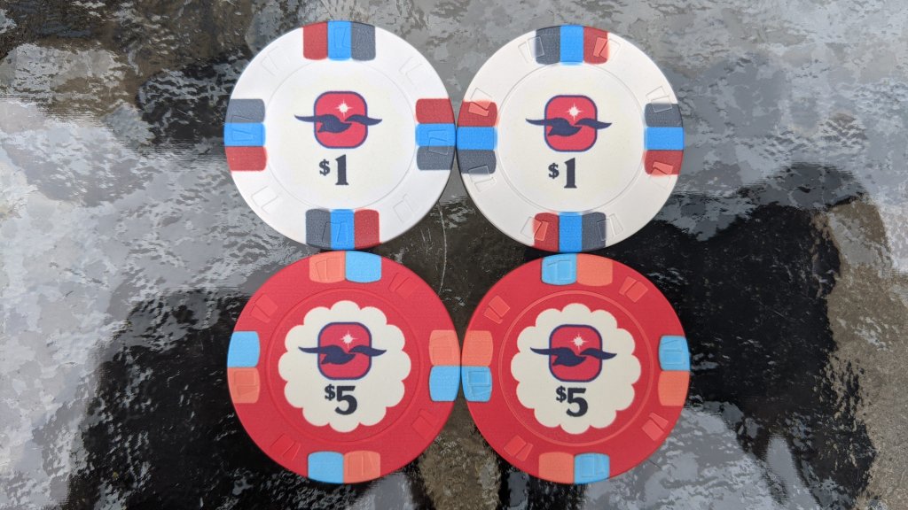 I took a photo if the chips I shared a video comparison of days ago. Forgot to upload it but looking at them it looks like the new chips are slightly thicker than the older cash set I first received, which were the less spinning/slippery chips. Which I had put both sets right next to each other.