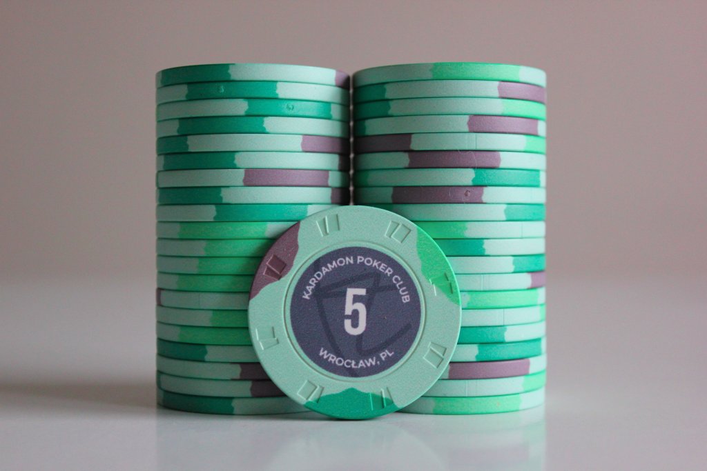 After much consideration about doing this as a second CPC set, I decided to go the quicker and cheaper road. Thanks to @TheOffalo for converting my design into print files. I'm really happy with the result. The only thing that I would change: the bird in the inlay is color matched to the chip base color. That works for every chip except for the $20. Here it is too dark with a lack of contrast.