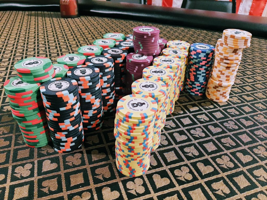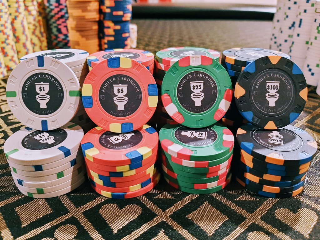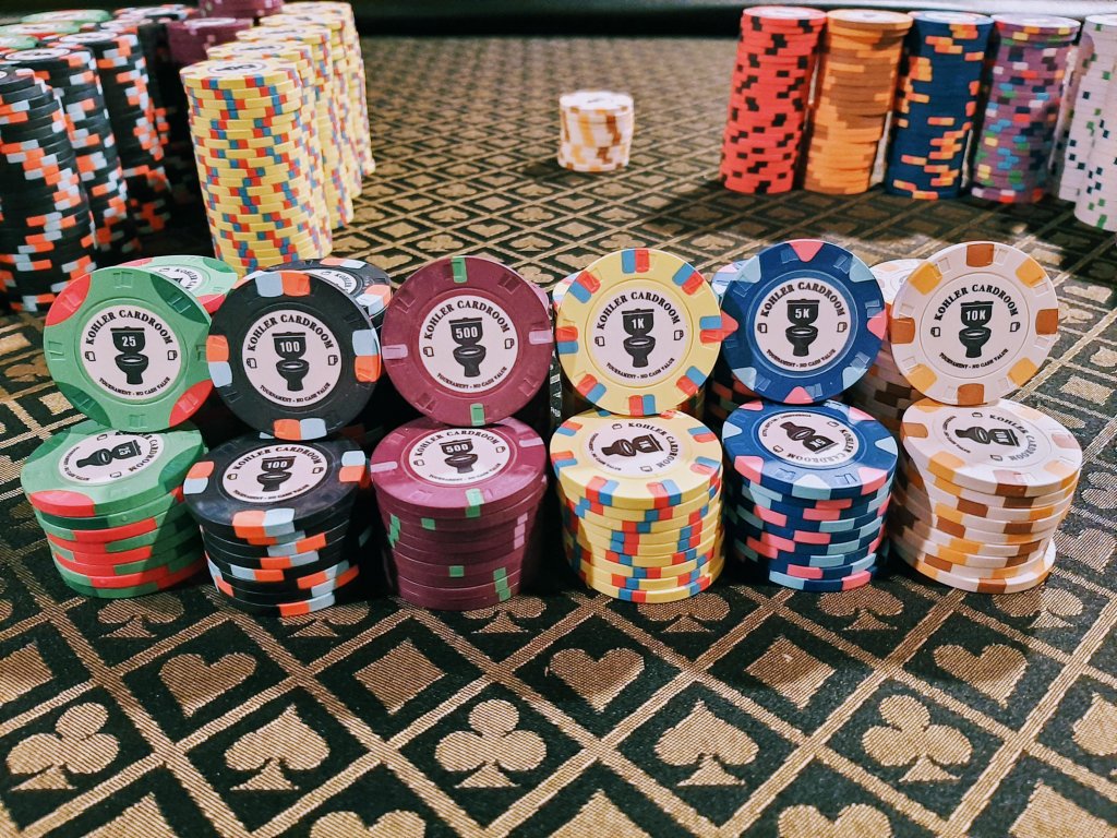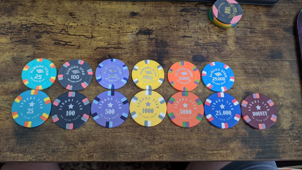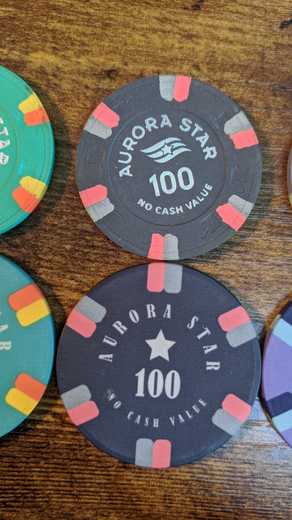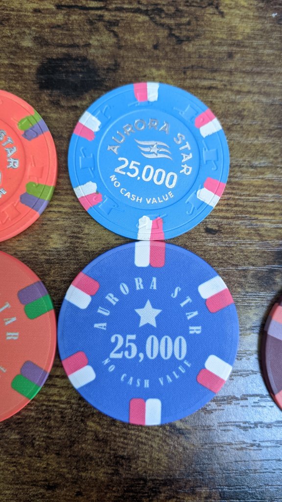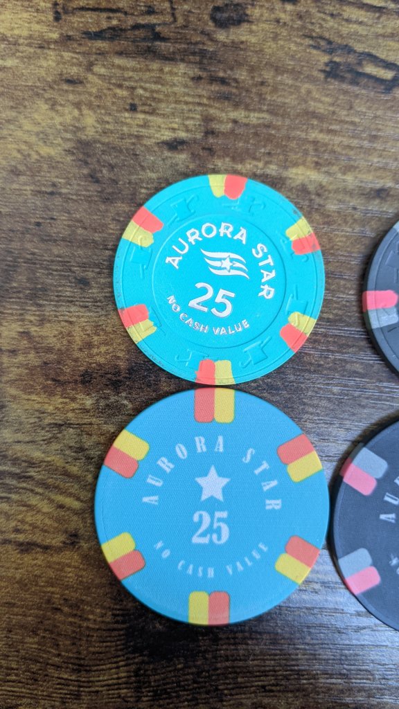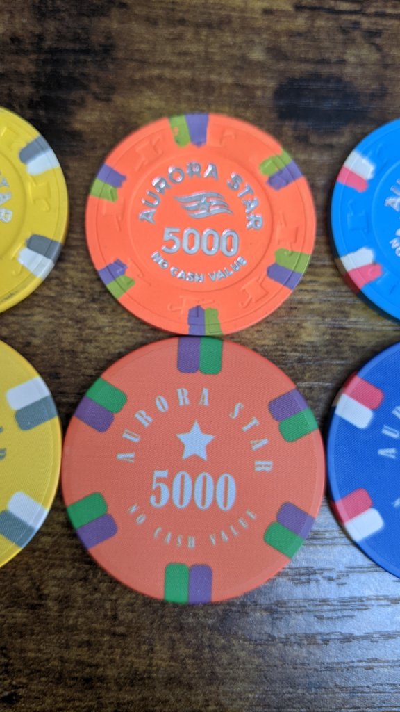 Edit: just below the above quote, there seems to be contradiction: “Customize the edge of the chip with a minimum order of 25 chips. Add text, a website address, denomination, stripes, or whatever else you can think of.”