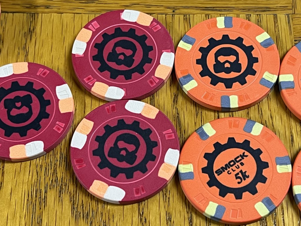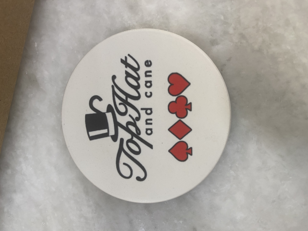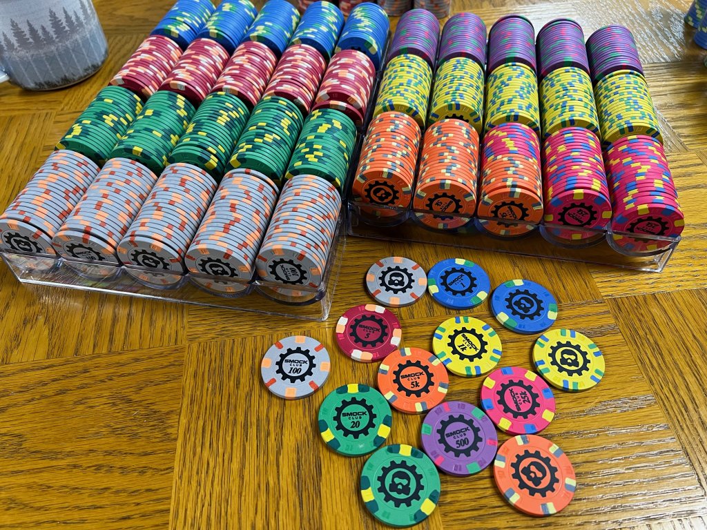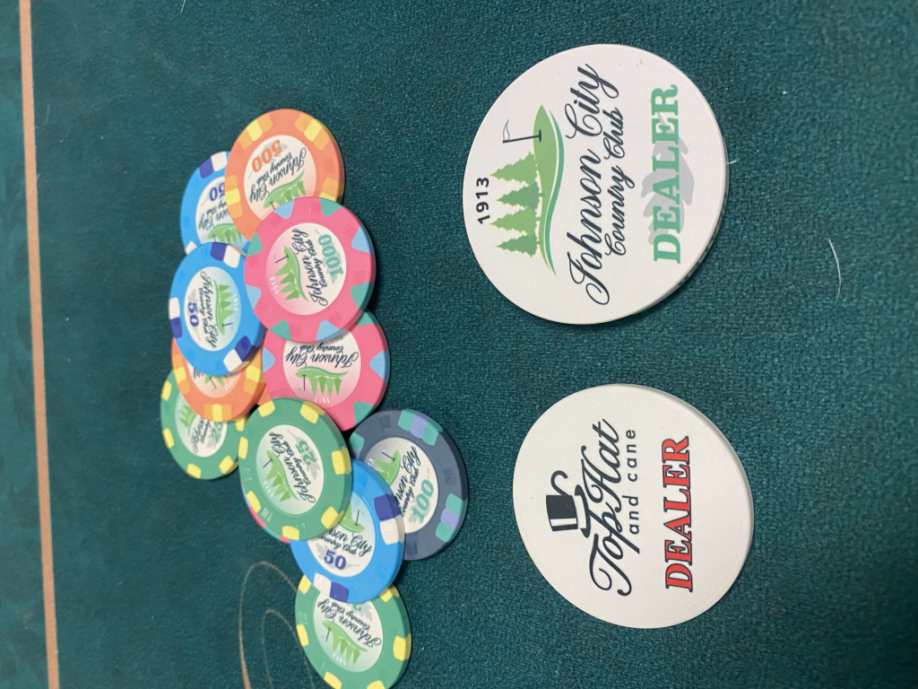 Dealer Button she sent is normal size, and feels like the same material as the chips. Not as nice as BRProPoker's DB's, of course...