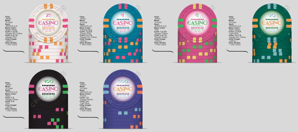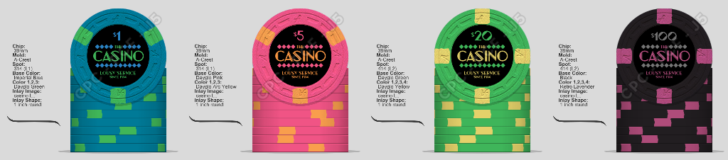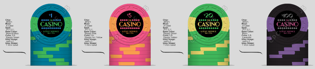 I might design this set out to $5,000 - wouldn't be that difficult - but we generally play friendly low-stakes cards, so I'd probably only order a ¢.25 - $500 set (I love that purple chip).