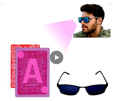 Might not be a bad idea to get a pair of these glasses to verify a 'legit' deck.Yes. There's a number of marked card decks that are invisible unless you have on certain glasses. Then its clear as day. I don't like linking to places where they can be purchased (easily Google'd) but they have Bicycle, KEM, COPAG, all marked cards that are sealed and look exactly like the real things.