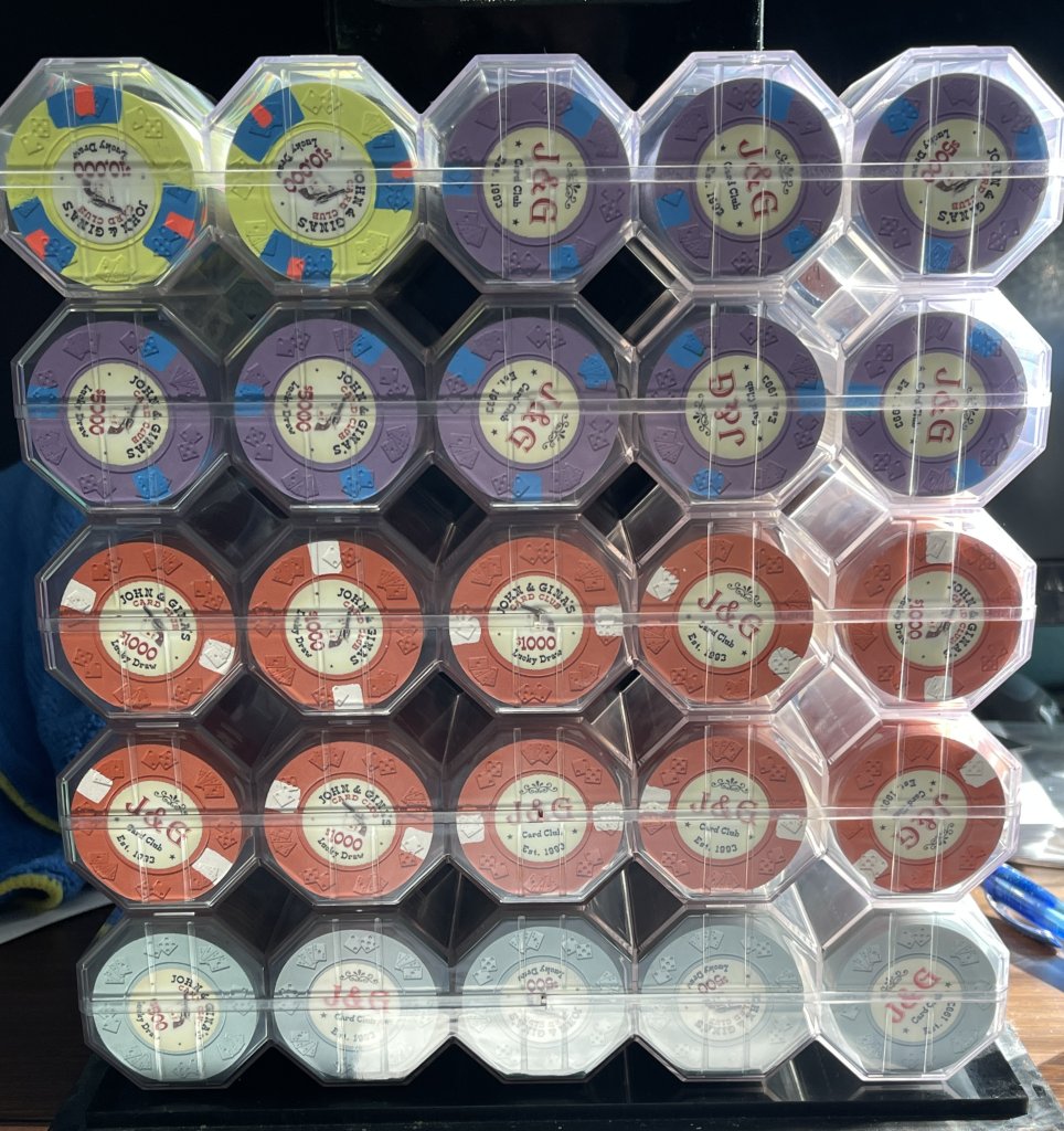 Thank you again! You're absolutely correct. The 43mm rack is ever so slightly wider than the 40mm. I still can't get my yellow Dragonara chips all the way in without risking damaging them, but I can just barely get them to start going in. And the tan and minty blue ones definitely fit better. I suspect they are about a quarter of a mm wider,Here’s my CPCs in the 43mm racks. FYI, the racks fit nicely in my birdcage.