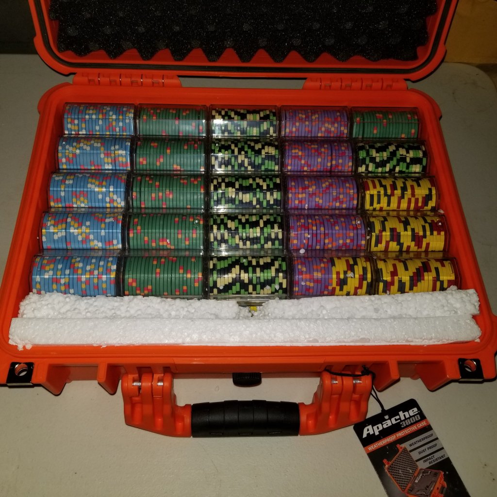 I wanted to throw this out there how these racks fit into cases. I got 1000 chips (43mm racks) into an Apache 3800. Fits nearly perfect with only a very slight wiggle, which is not noticeable. I have 600 43mm and 400 39mm chips, all CMs. Yeah, the 39mm chips wobble a bit, but I doesn't bother me.