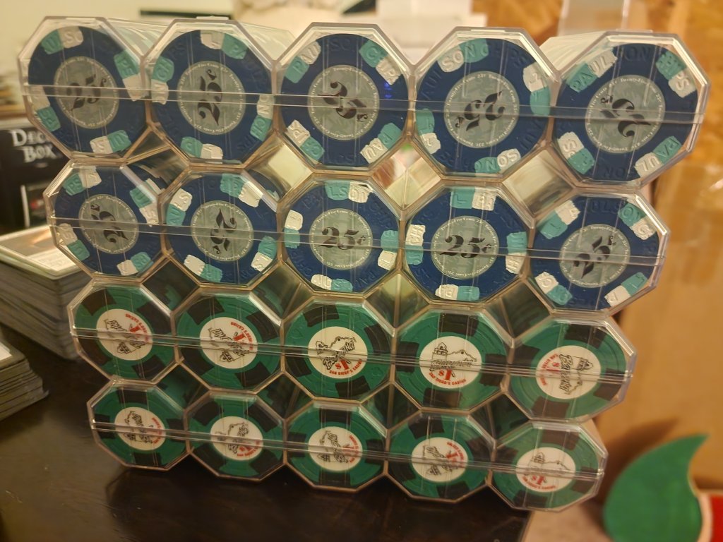 There's virtually no rattle for a 39mm chip in the 40mm racks, or for a 43mm chip in the 43mm racks. The only time that I see a rattle is when I put a 39mm into the 43mm rack, but it's no worse than using a Matsui rack.they seem to be the best for for the chips