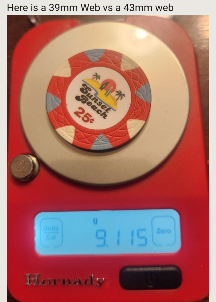 - I read a lot about the tina chips through this forum and reddit. This was such a big rabbit hole I didn't see coming lol. Question is between the 39mm vs 43mm web molded; is one better than the other in terms of "spinners". I read it earlier in a different post but I can't seem to find that thread