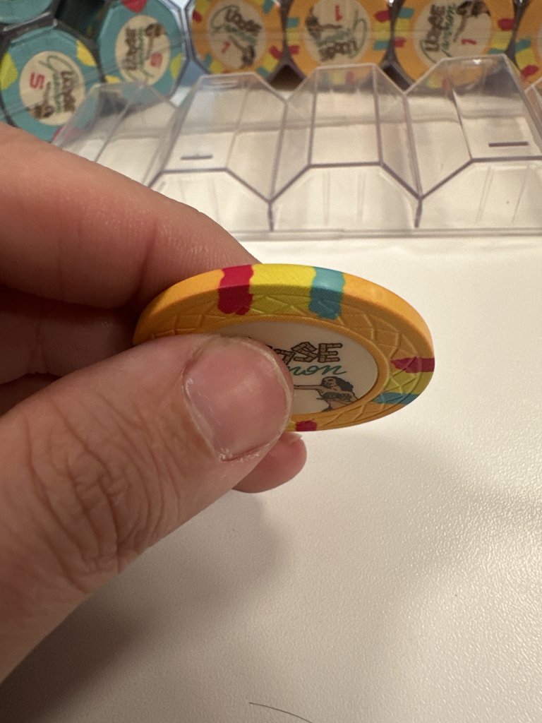 And I hadn’t noticed on other people’s chips but the labels are all aligned to the chip spots. (In my case, top of label aligns with a pink spot) Wow… didn’t expect that.