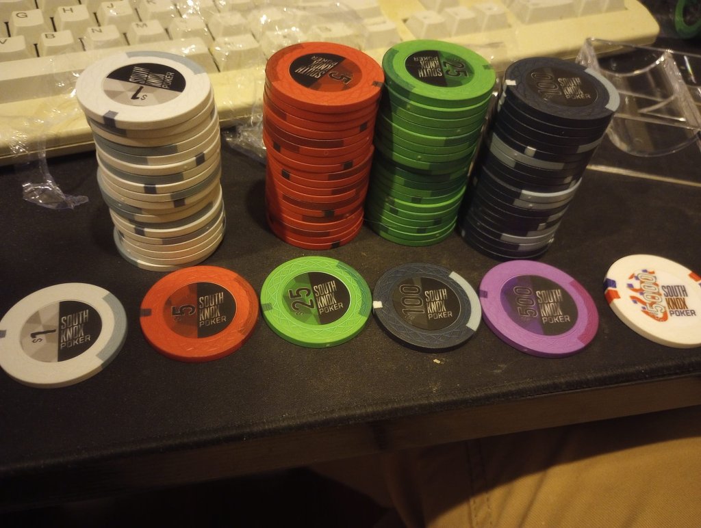 Of particular note is the $1 chip, the side view shows some pretty significant bleed between the white and blue