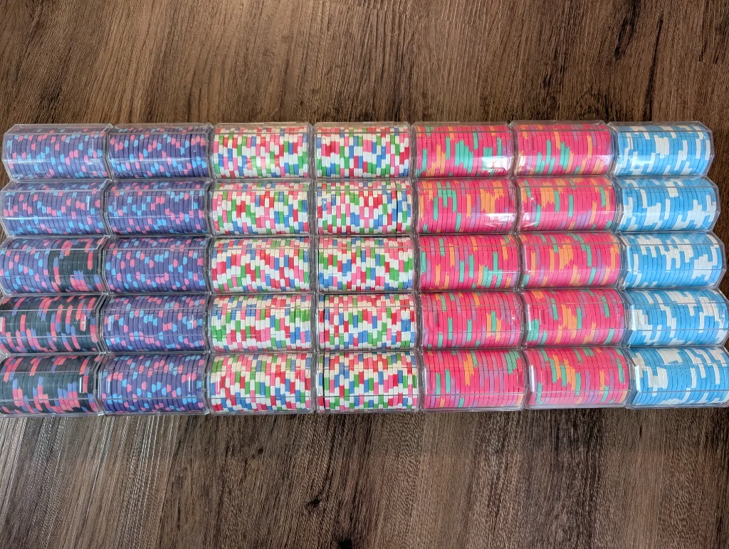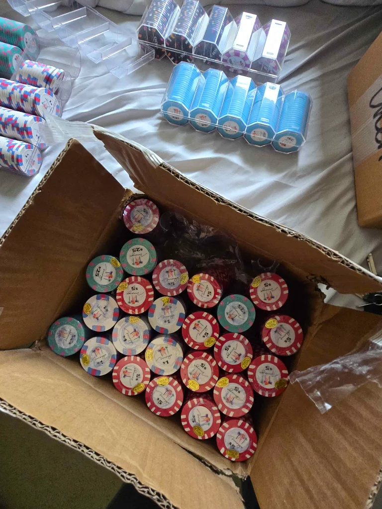 My wayward set of Philadelphia sports team themed chips finally arrived today! Other than the 76'ers chips needing a label correction, they came out awesome! Can't wait to put these in play on Friday.