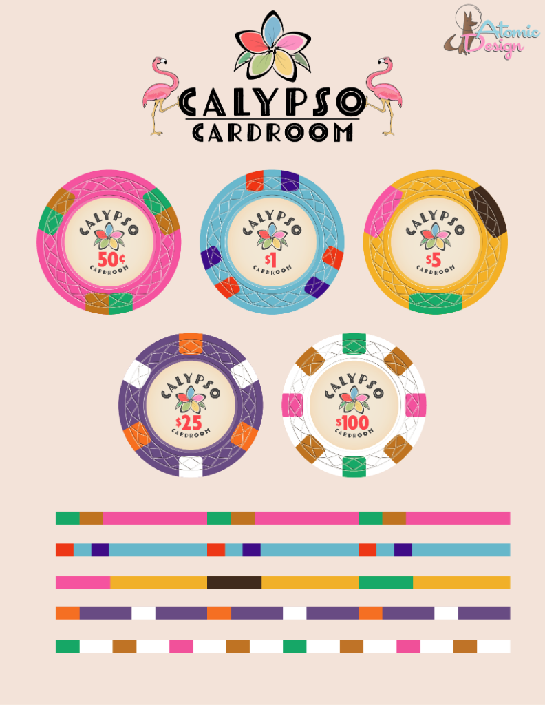 $5 – 50 ($5 label on yellow chip shown for $1000)
