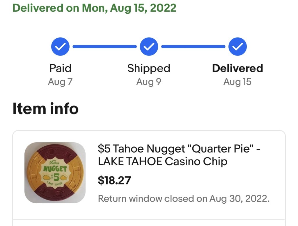They're 60+ year old chips and hard to find I think. @Spinettis Gaming has a single for sale for $95 on their site: https://spinettisgaming.com/products/tahoe-nugget-casino-lake-tahoe-nevada-5-chip-1962