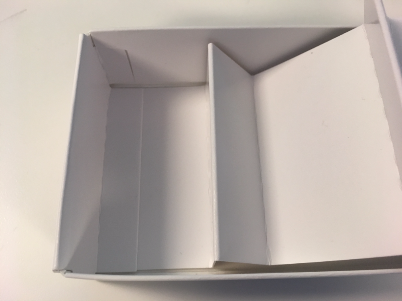 First a tip: probably obvious but I'm tucking the ends of the divider piece underneath the box end flaps (see attached pictures).
