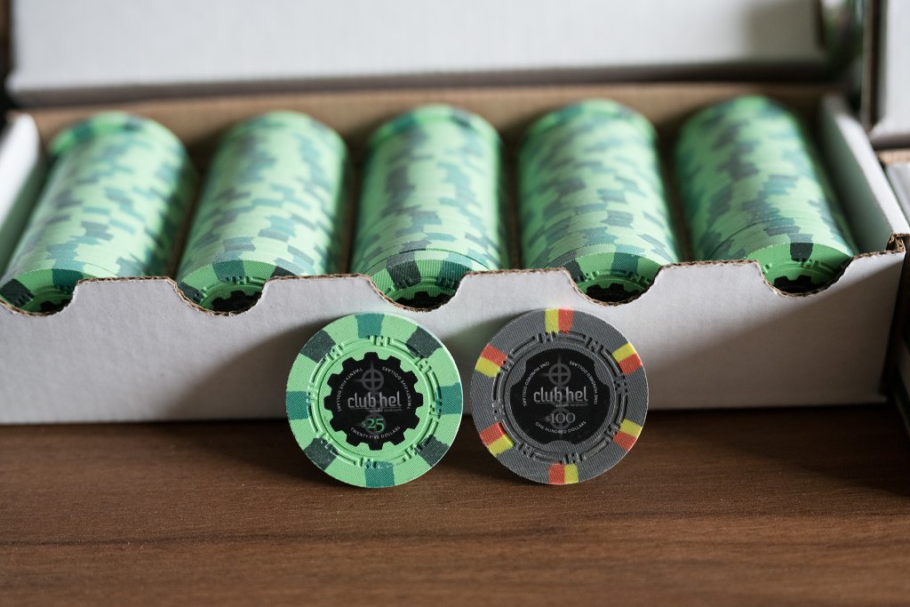The only thing that somewhat needs to be readable by everyone really is the chip value as a number, and that one has the biggest font size on the inlay if you ignore the logo. It's actually just a little bit smaller than its counterpart on the Horseshoe chips - and keep in mind those aren't as limited with space as I was, given they have used faux shaped inlays where they can put graphical elements very close to the border.