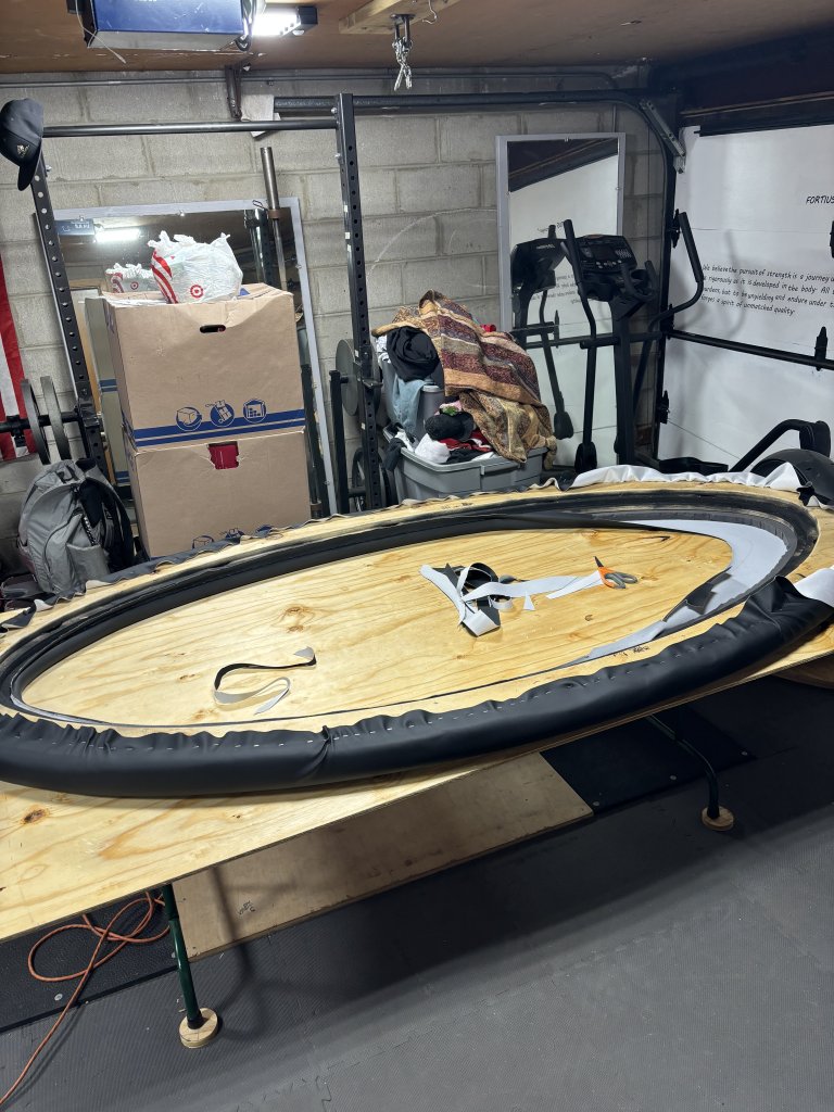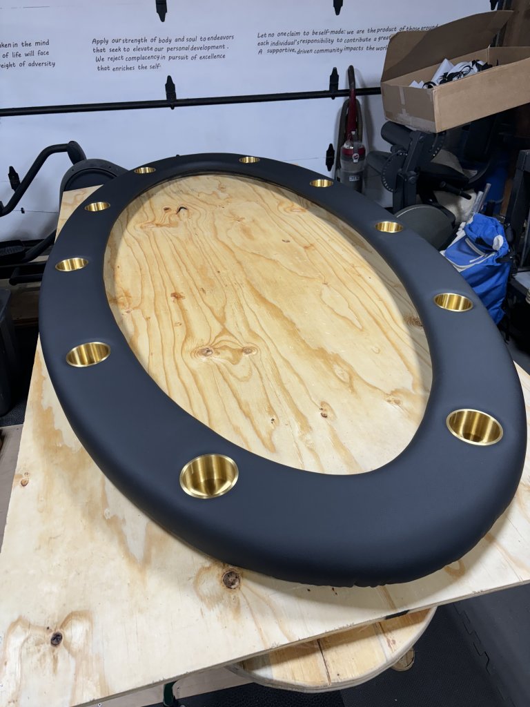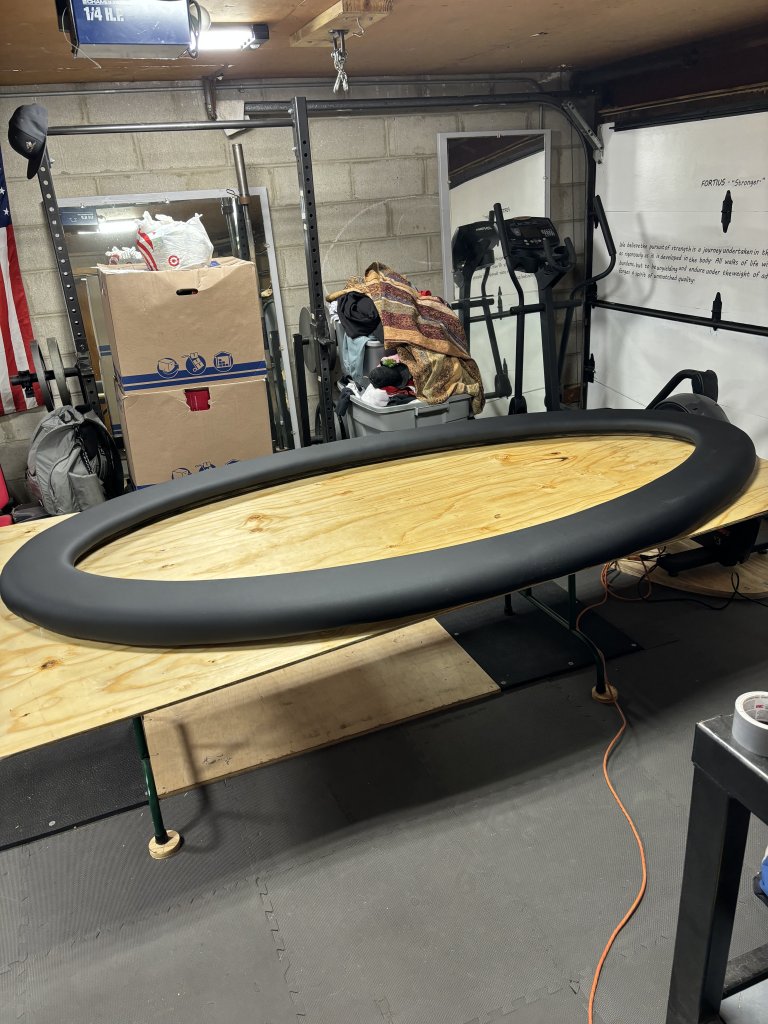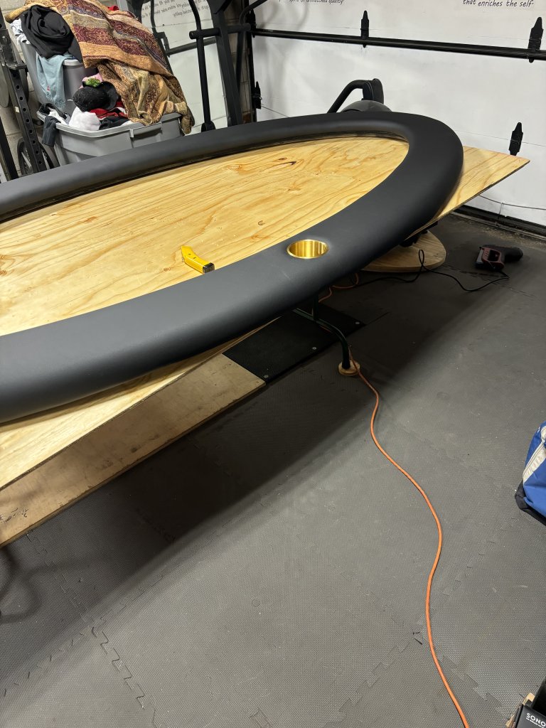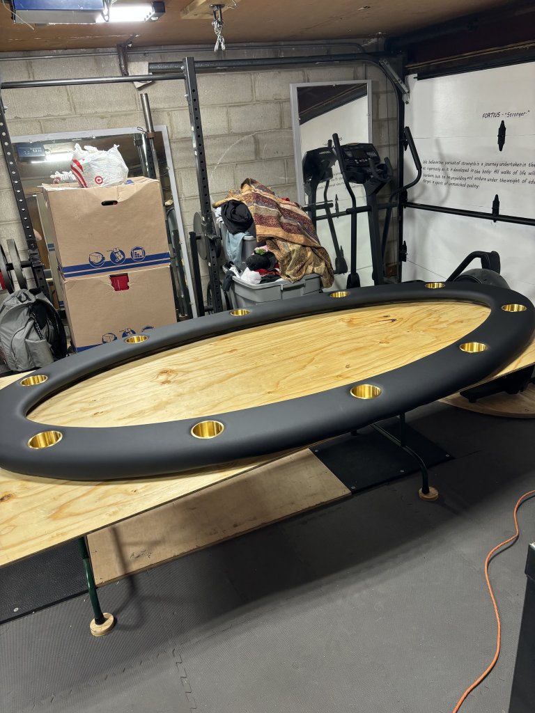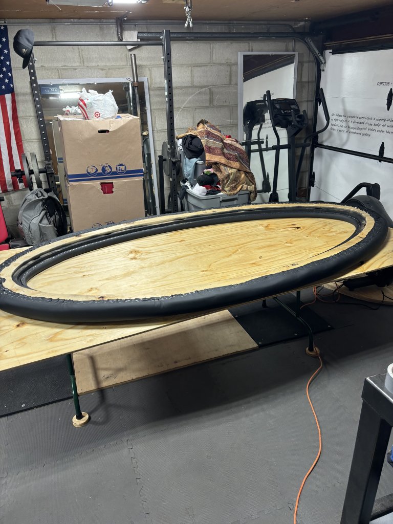 Tomorrow we have some record warmth up here in Minnesota so the table goes into the driveway and I’ll do spray glue and table pad, spray glue and speed cloth and staples galore. The under the rail LED exactly like the one on my oval will be here in the morning according to