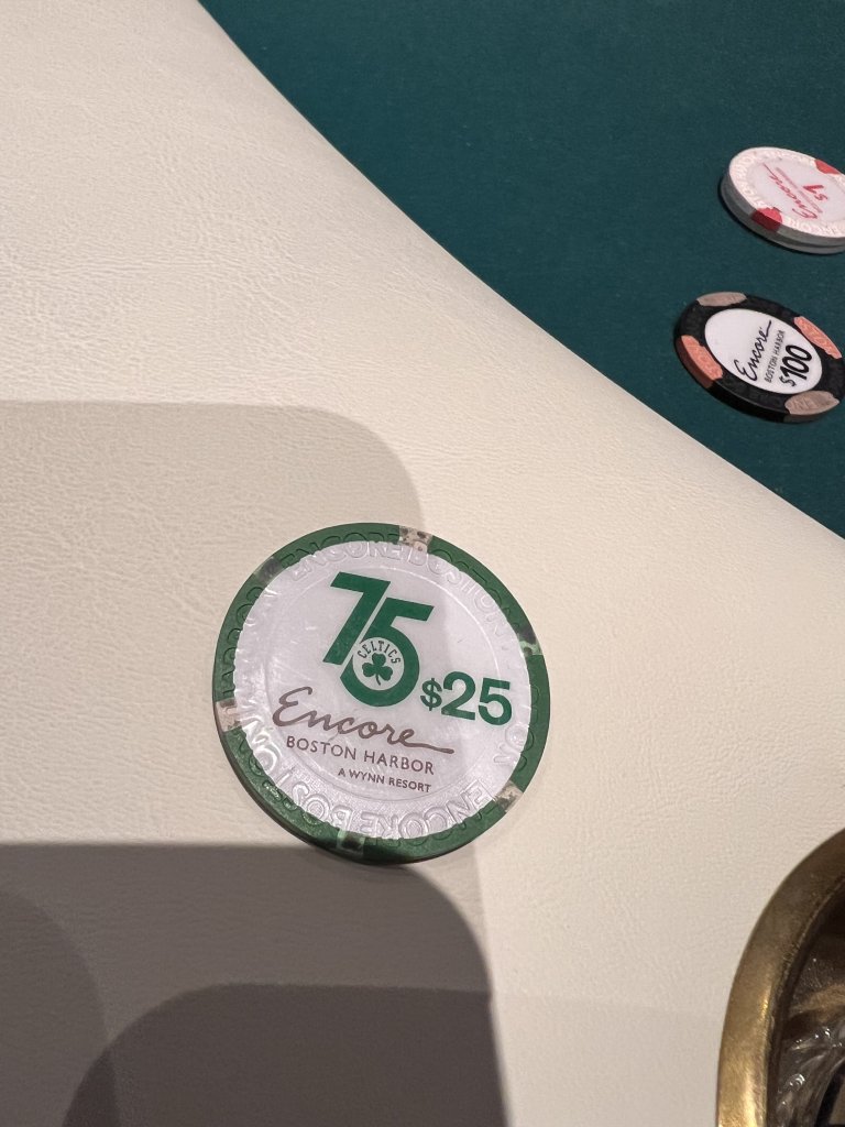 I know there isn’t a $75 denom chip but when it’s tossed in while you’re in an intense hand it can tweak the brain. Same with Mohegan’s dang 20th anniversary $5s