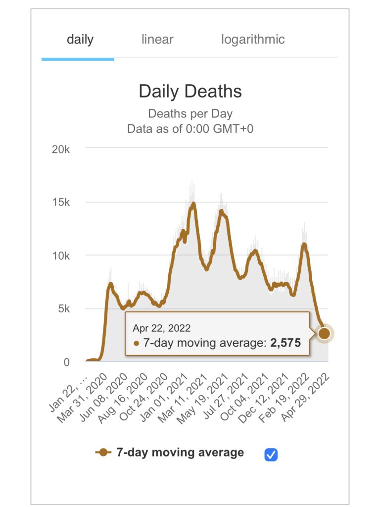 These are reported daily deaths for the whole world. I find the trend very encouraging!