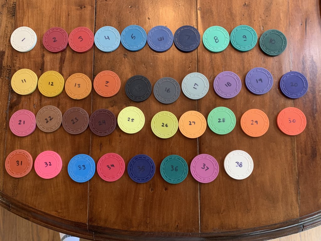 So if you order 500 chips you can have up to 5 different chips. You could order 300, 50, 50, 50, 50.