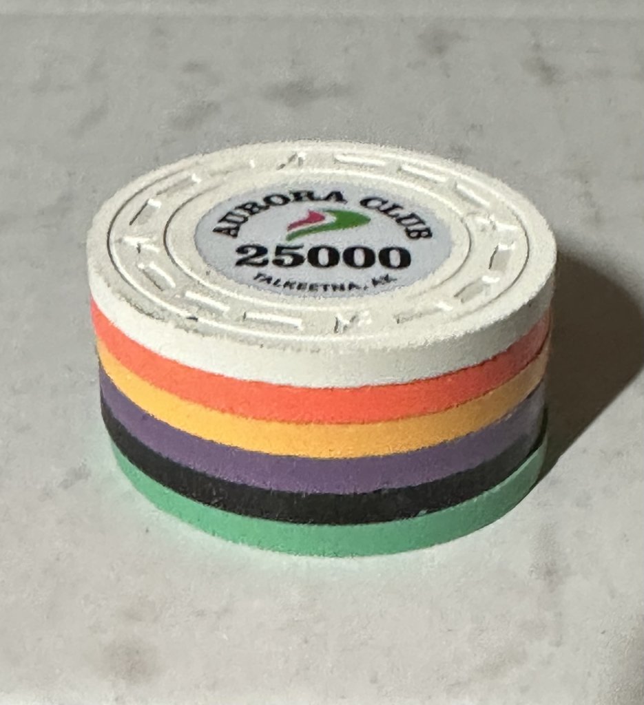 As I first looked at my DG Peach chip (which I love and I am happy to choose DG Peach over DG Arc Yellow), I wonder because the canary spot almost look a bit greenish in stacks... But in the end I really fell in love with this Combo!