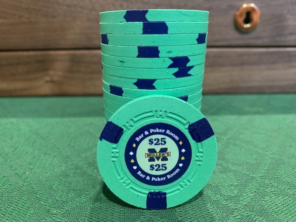 Love the $1Well just found out I'm getting a little bonus for the end of the year at work...... thinking I should pull ahead the order for my cash set. I'm going to stick with the "Miller's Bar and Poker Room" theme, but I want to change up the inlay to make it different than the Tourney set. So please ignore the inlay on the mock up here.