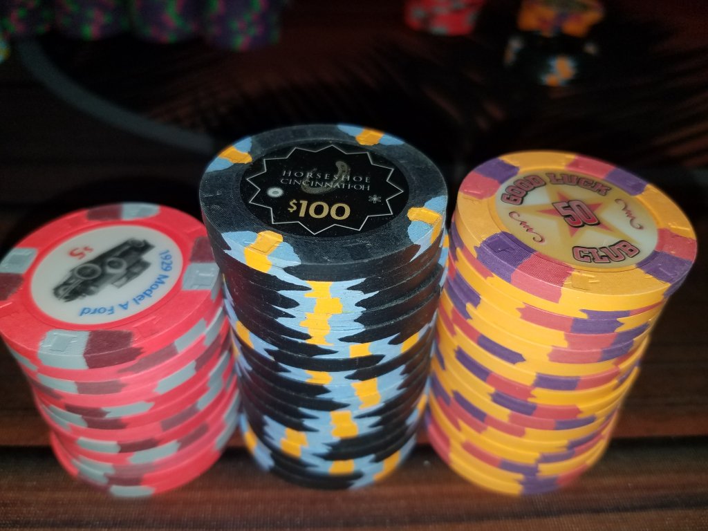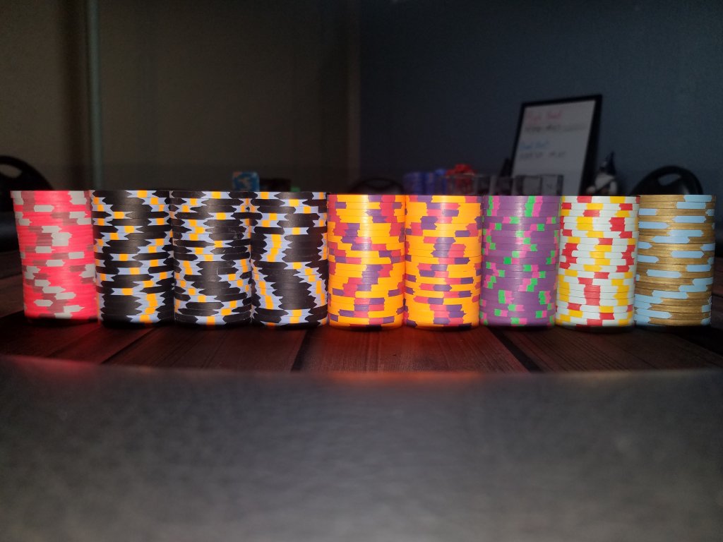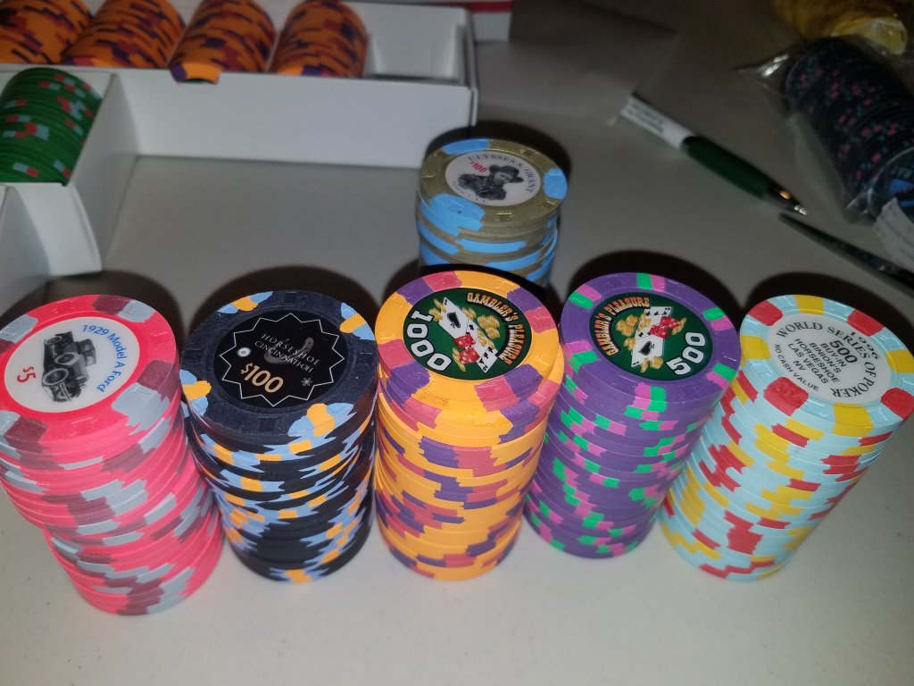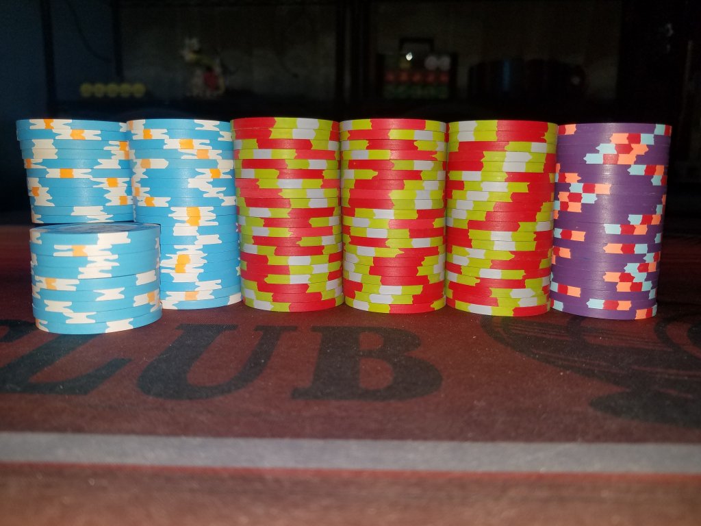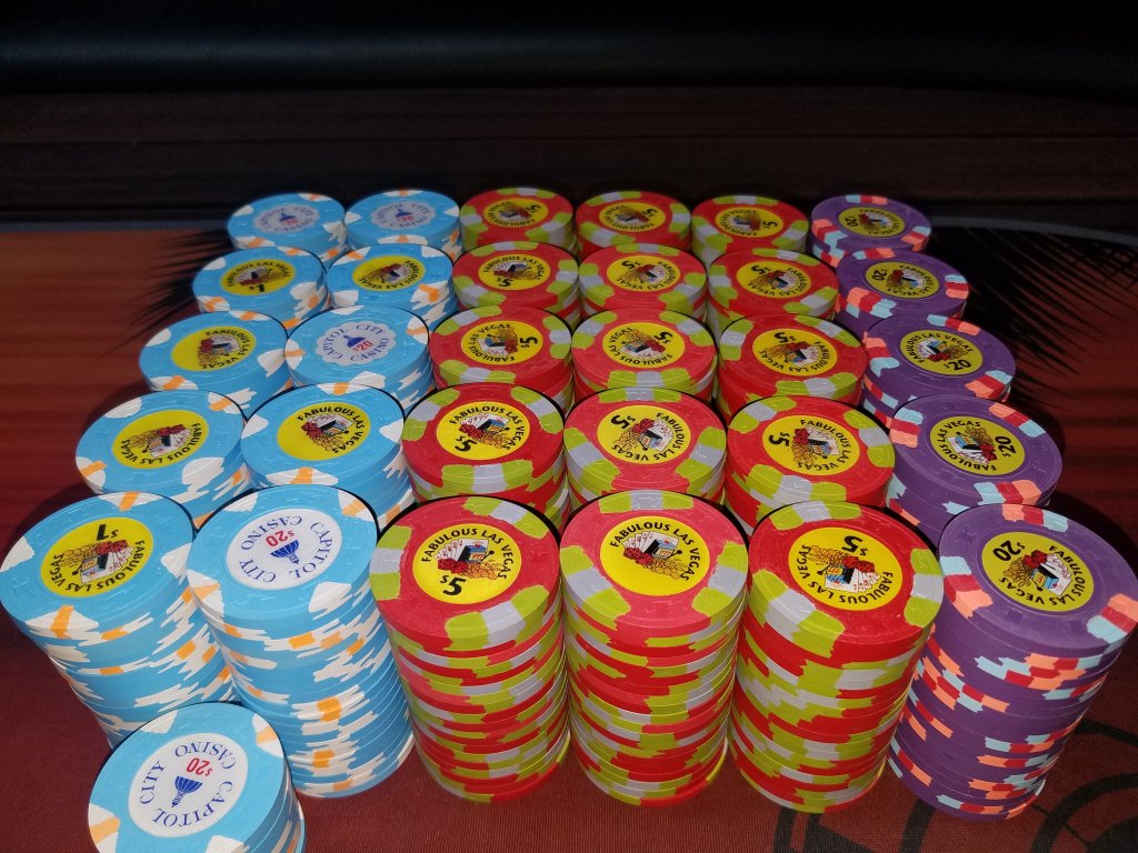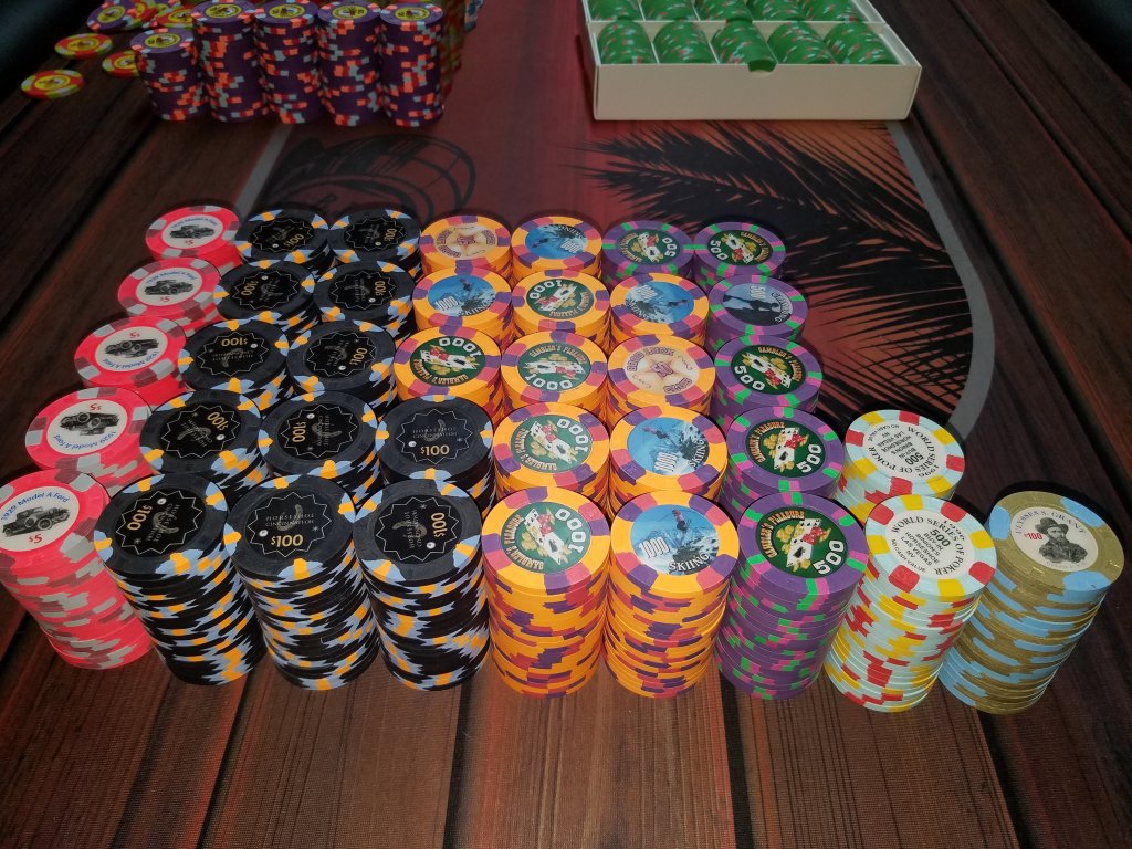 Here's my current cash-game chip collection. I plan on expanding to more 5's, 25's and 100's in the near future. Enjoy :)