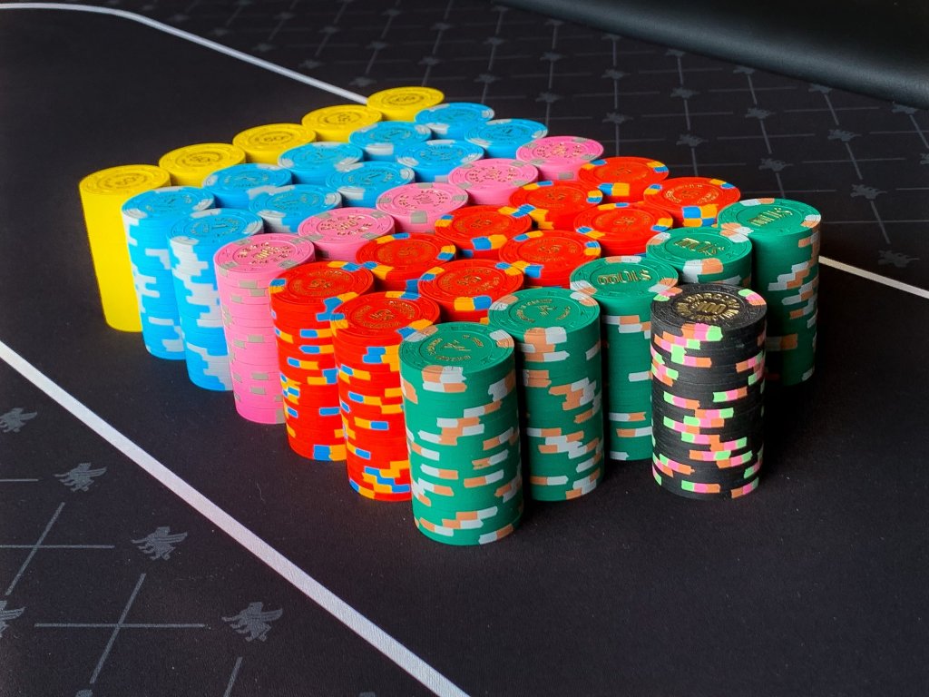 Total set is 800 chips. $4,350 total bank, and I have a barrel of $100’s on standby if needed!