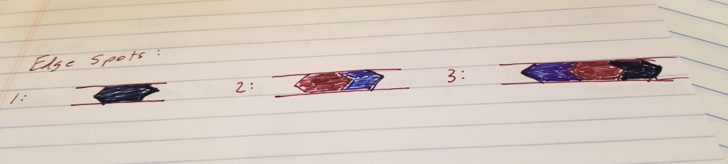 This pic showing the 3 different chips has me thinking. Has anyone asked their designer to give them edge spots with a V in them, instead of a straight line? I'd like to see something like this for my chips with one, two, or three edge spots: