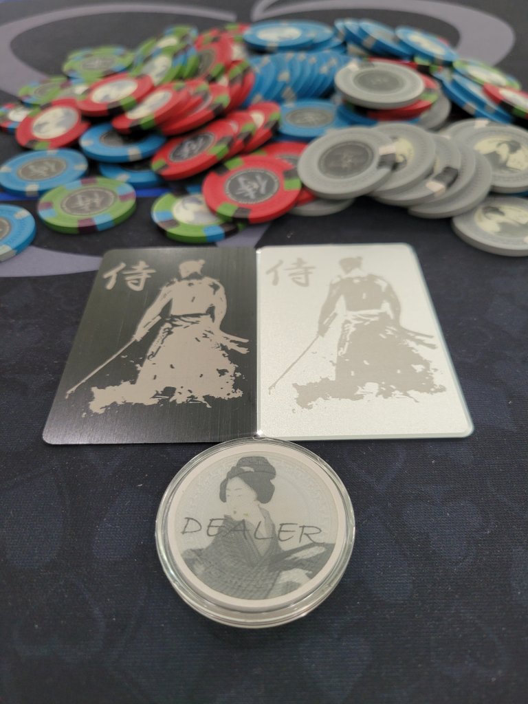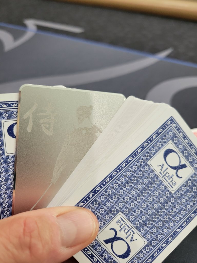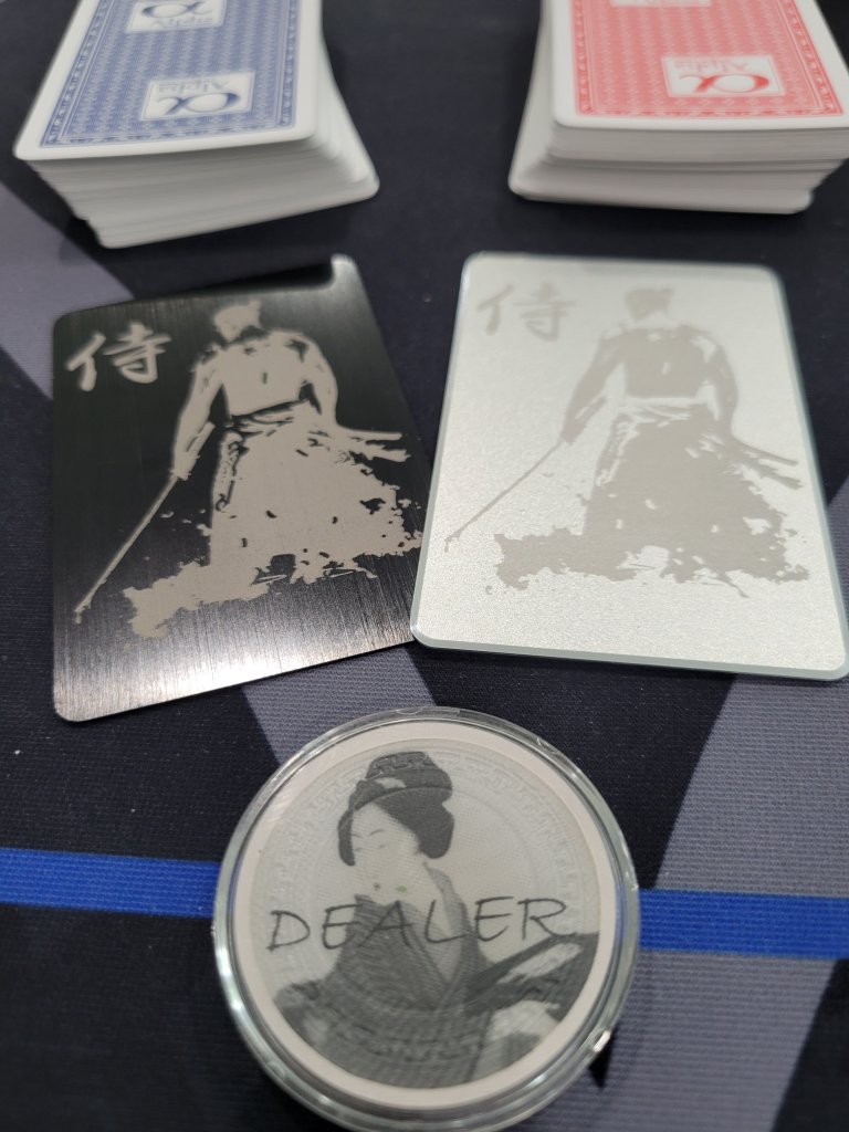 I’m trying to get a couple poker size metal cut cards Phil Ivey on one side and my nickname on the other. On the other card Texas Dolly on one side and another name on the other side . On the sides with the nicknames can I get the 4 suites on the corners ?